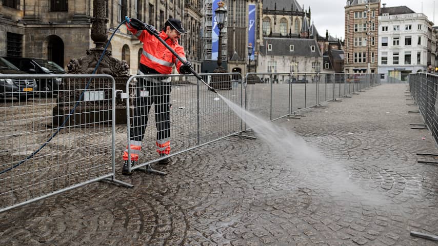 Medewerkers van de gemeentelijke reinigingsdienst waren vanmorgen al vroeg aan het werk om de Dam schoon te krijgen. De Nationale Herdenking op het Amsterdamse plein begint om 18.45 uur. Om 20.00 uur volgen twee minuten stilte.