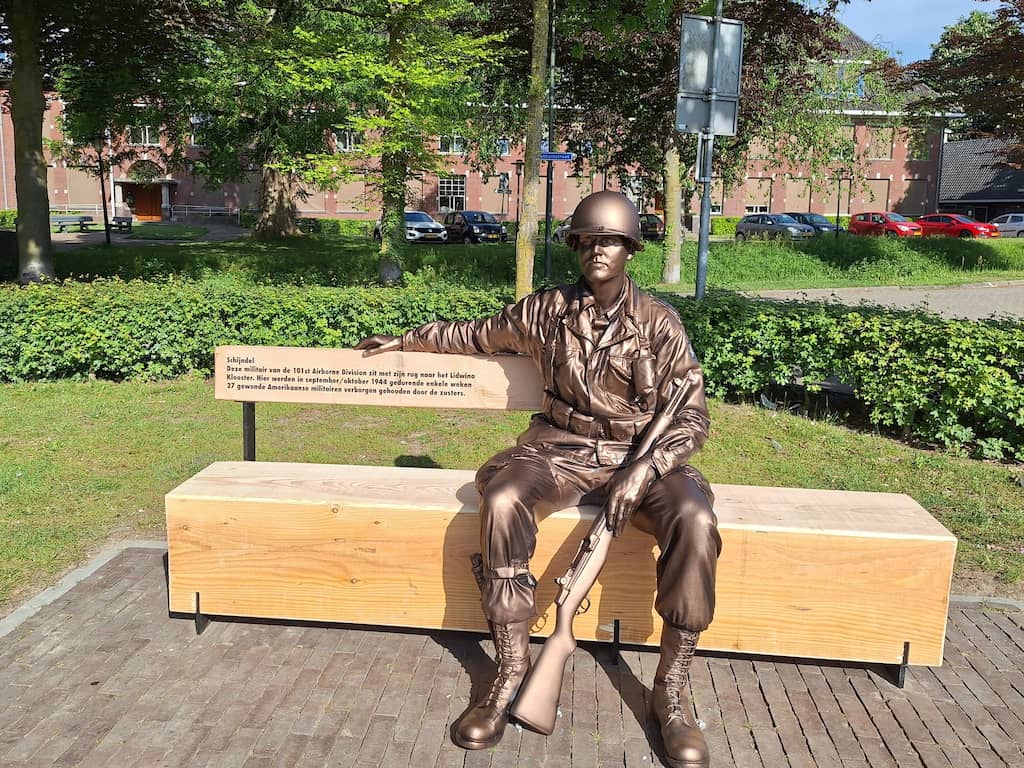Na een bronzen plaquette van een oorlogsmonument in Arnhem, is wéér een oorlogsmonument gestolen. Het gaat om een beeld van een soldaat in het Noord-Brabantse Schijndel, dat er nog maar een paar dagen stond. De gemeente Meierijstad, waar Schijndel onder valt, gaat uit van een grap en roept de dader(s) op de soldaat terug te brengen.