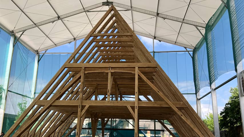 Dat dak wordt nu met behulp van middeleeuwse technieken herbouwd om een ode te brengen aan het vakmanschap van de oorspronkelijke bouwers. Net als toen gebruiken de timmermannen eikenhout.