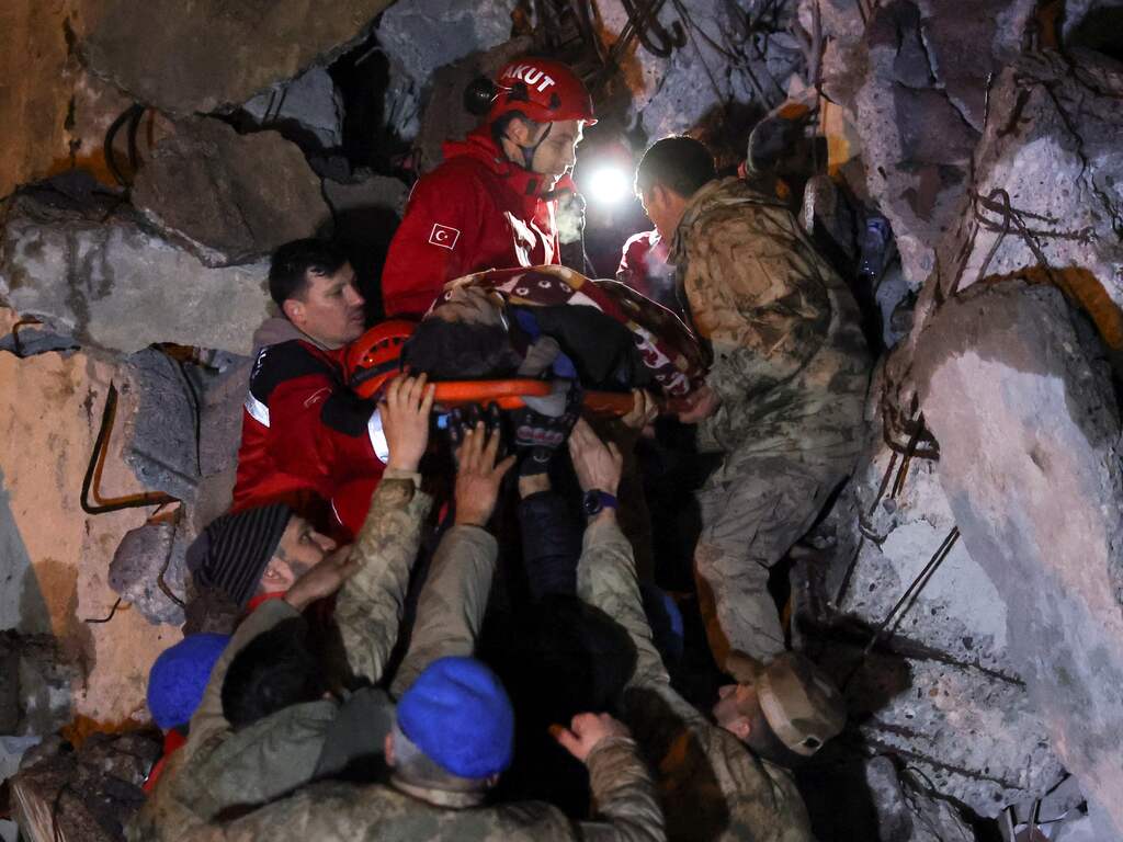 In Turkije zijn ruim 5.600 gebouwen ingestort. De Turkse rampenbestrijding heeft bijna 10.000 hulp- en reddingswerkers naar de getroffen gebieden gestuurd. Daarnaast helpen ruim 3.500 militairen mee bij de grote reddingsoperatie. Het winterse weer bemoeilijkt het zoeken.