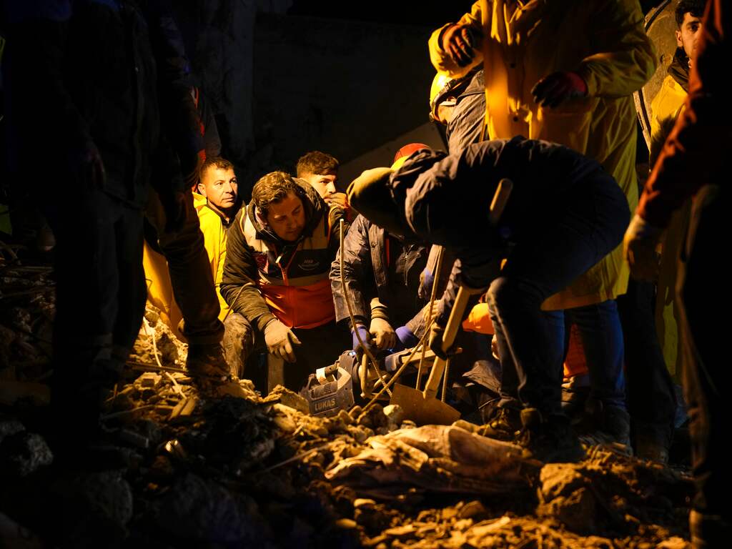 Reddingswerkers halen een slachtoffer onder het puin vandaan in de Turkse stad Adana. | Beeld: ANPRuim 700.000 euro binnen via Giro 7244