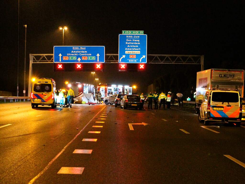 Dode bij zware aanrijding op A2 bij Nieuwegein, meerdere auto's betrokken