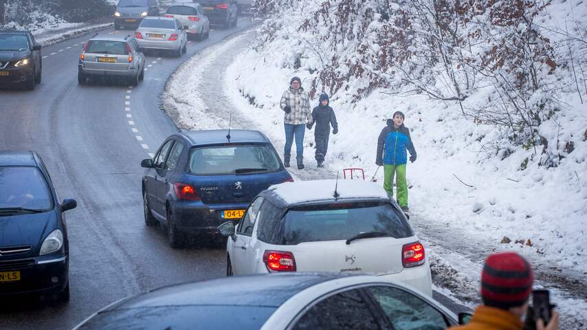 Van heinde en verre waren mensen naar het gebied gekomen om te genieten van de sneeuw, die de afgelopen dagen was neergedwarreld. Volgens de burgemeester waren vooral gezinnen, met hond, kinderen en slee op pad. "Veel mensen kwamen van ver weg, onder meer uit Eindhoven en Den Bosch. Hij zei dat er op 10 kilometer afstand al files stonden van langzaam rijdend verkeer richting Vaals en Vijlen.