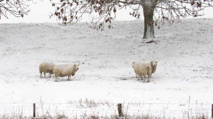 Het winterse weer begon 's middags in Zeeland en trok verder richting het noordoosten. De sneeuw heeft inmiddels het noorden van het land bereikt.