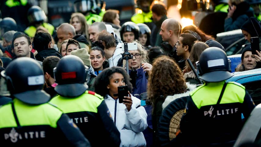 De politieactie leidt in de straten rondom het plein nog een paar keer tot opstootjes, maar aan het begin van de avond is de situatie onder controle, laat de gemeente weten. | Beeld: ANP