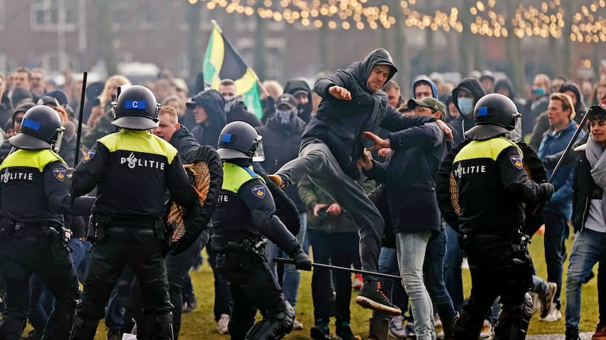 Een illegale demonstratie op het Museumplein in Amsterdam tegen het inmiddels gevallen kabinet-Rutte III en de coronamaatregelen eindigde zondagmiddag met een 'schoonveegactie' van de Mobiele Eenheid van de politie. Agenten hielden 115 personen aan van wie er maandagochtend nog 15 vastzitten. Een reconstructie van de gebeurtenissen in beeld.