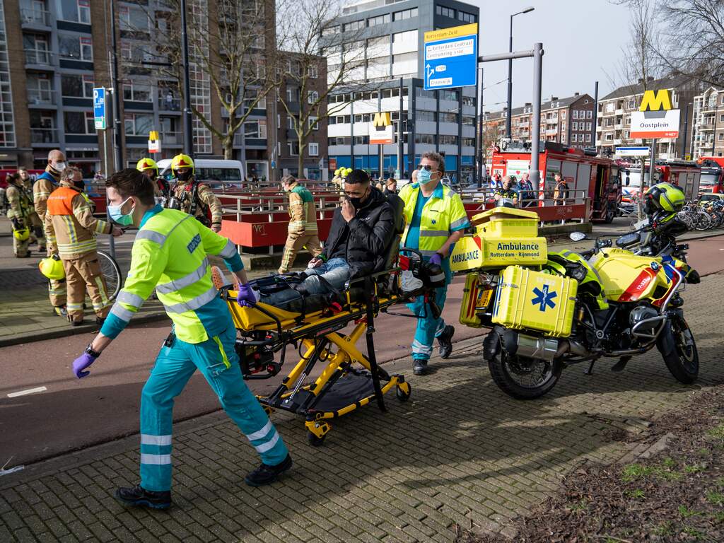 Het metroverkeer rond station Oostplein is voorlopig gestremd. Ook de trams die bovengronds langs het station komen, kunnen er voorlopig niet langs vanwege alle hulpdiensten die hun voertuigen op de weg hebben geparkeerd.