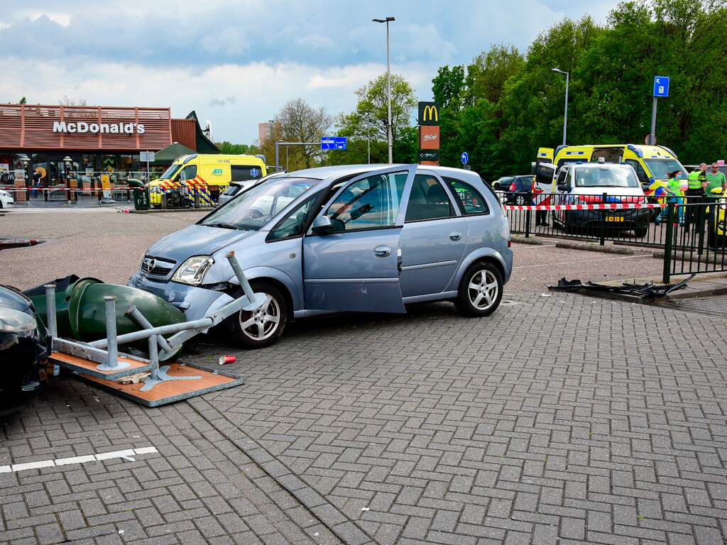 Drie gewonden doordat auto door hek bij McDonald's Hoogvliet schiet