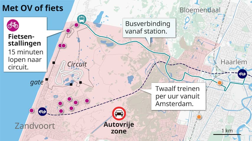 De NS verwacht gemiddeld 23.000 mensen per dag naar Zandvoort te brengen, en een ongeveer even groot aantal later op de dag ook weer terug. Vanaf het station is het zo'n tien tot vijftien minuten lopen naar het circuit.