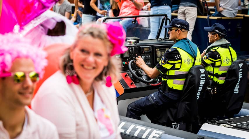 Agenten surveilleren op het water tijdens Pride Amsterdam. | Beeld: ANPNiet altijd melding vanwege veelheid aan incidenten