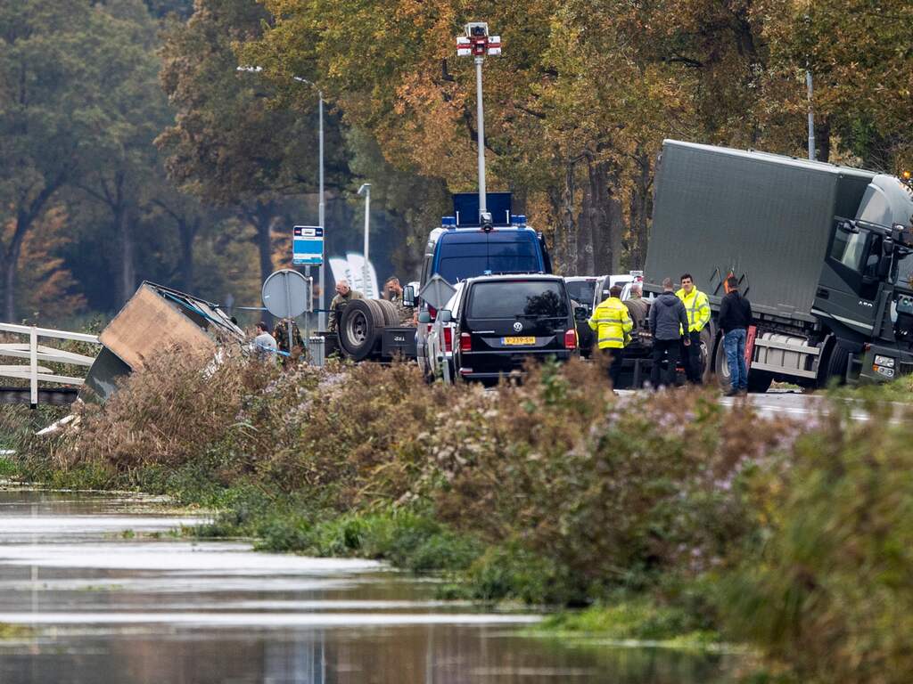 Het incident gebeurde aan de Kolonievaart. De vrachtwagen was onderweg vanaf een munitiedepot in het nabijgelegen Veenhuizen. Hoe het ongeluk kon gebeuren, is nog onbekend. De bestuurder van de vrachtwagen kon veilig uit de cabine klimmen en heeft geen letsel opgelopen. Op beelden van lokale media is te zien dat de oplegger total loss is.