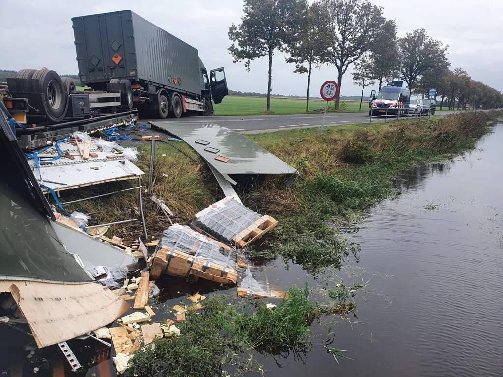 Op beelden was te zien dat de oplegger ondersteboven lag en er van de wanden niets meer over was. De vrachtwagen was onderweg vanaf een munitiedepot in het nabijgelegen Veenhuizen.