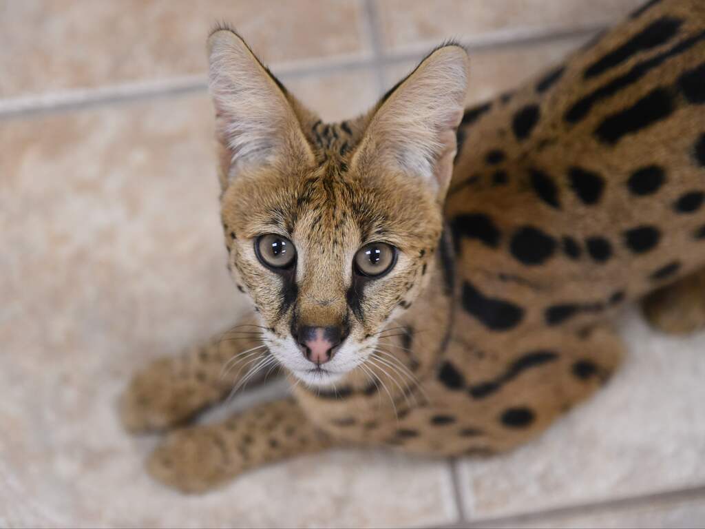 Een serval is een grote katachtige met een tijgerprint. Het is legaal om het dier als huisdier te houden.