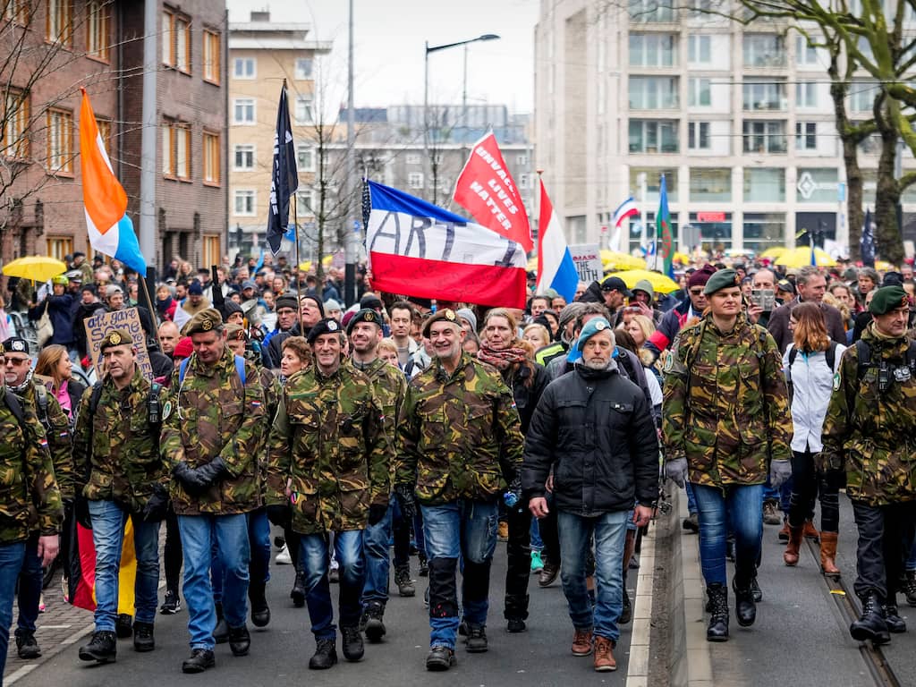 Mars tegen coronabeleid eindigt vreedzaam op Museumplein in Amsterdam