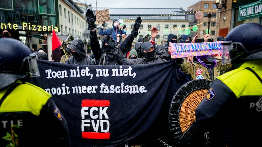 Langs de route stonden enkele tientallen andere betogers die demonstreerden tegen fascisme. Zij waren eerder op het Museumplein, maar werden door de politie verplaatst in drie bussen naar het Max Eeuweplein. Deze plek werd door de mobiele eenheid afgeschermd.