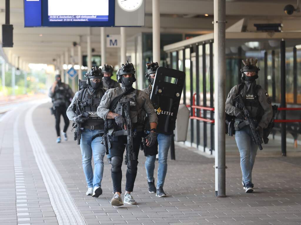 Op het station waren volgens regionale media veel politieagenten aanwezig. Volgens Omroep West kwam het arrestatieteam in actie bij een trein op perron 5b. Ook hing er een politiehelikopter boven het station.