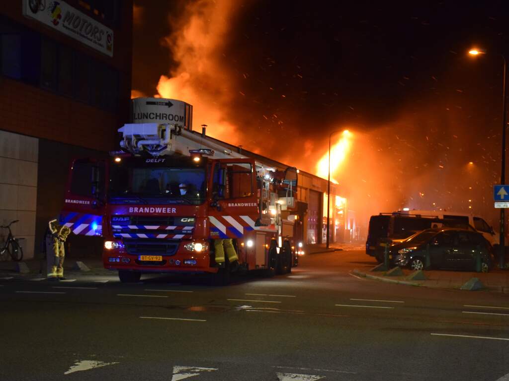 In Rijswijk is in de nacht van woensdag op donderdag in meerdere bedrijfspanden aan de Van Gijnstraat een zeer grote brand uitgebroken. Vlammen slaan metershoog uit het dak en er komt veel rook vrij. Ook zijn er knallen gehoord.