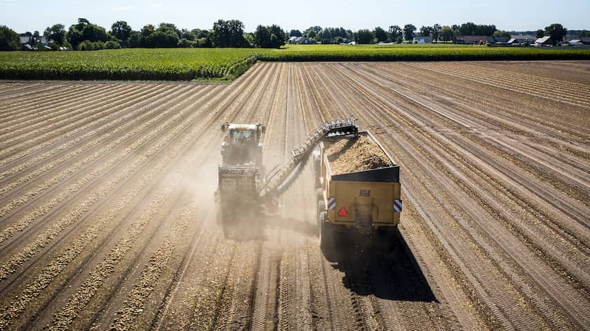 Een boer rooit aardappels op een gortdroge akker in Venray. | Beeld: ANP