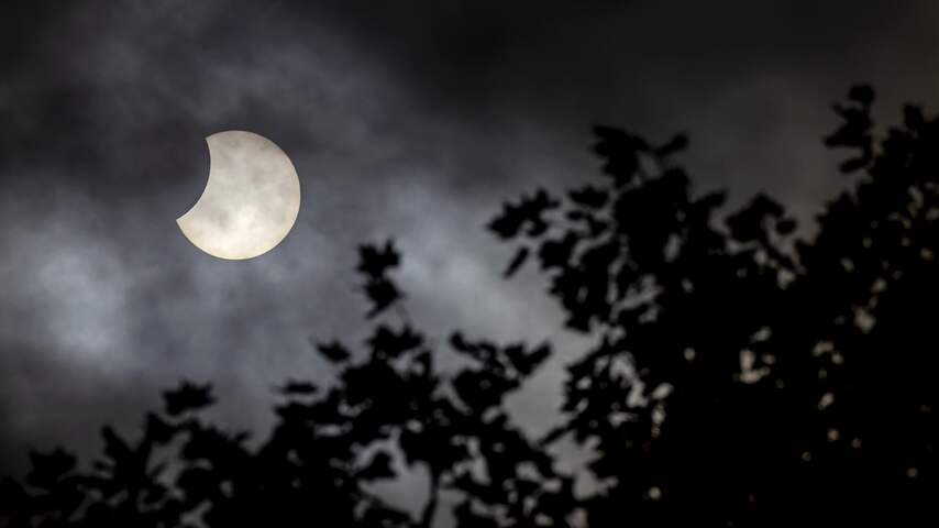 Rond 12.00 uur was de gedeeltelijke verduistering het zichtbaarst. | Beeld: ANP