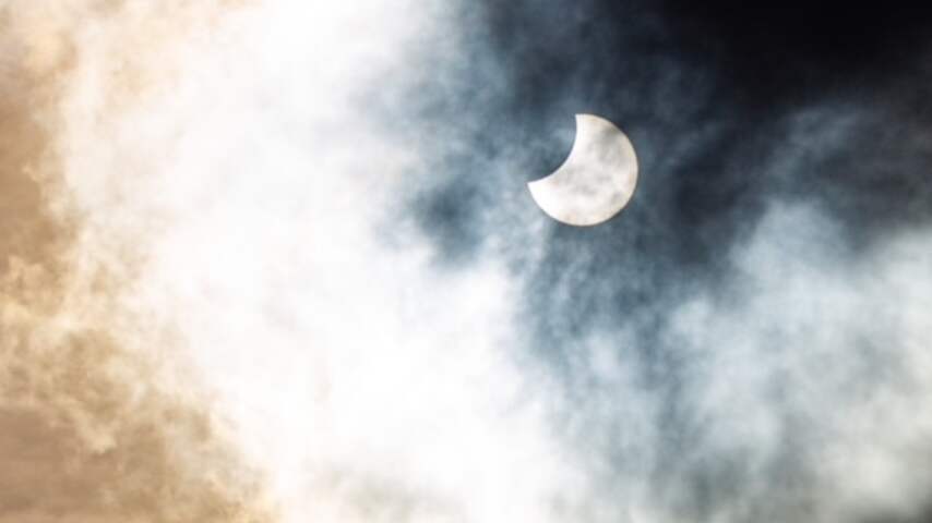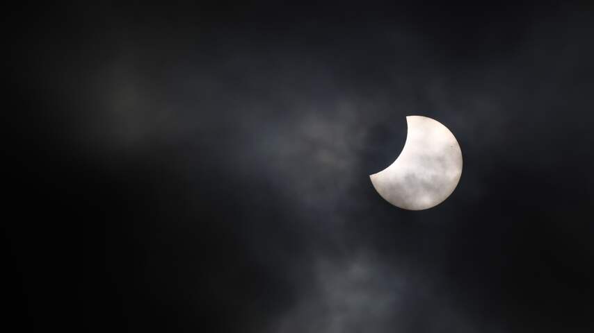 De maan leek vandaag een hapje uit de zon te nemen: tussen 11.08 en 13.03 uur was in Nederland een gedeeltelijke zonsverduistering te zien. Dat het her en der bewolkt was, gooide over het algemeen geen roet in het eten.