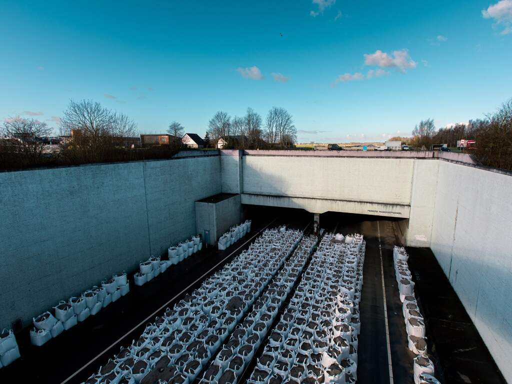Om ruimte te creëren voor het wegverkeer worden de grote zandzakken vanaf maandag verplaatst en weggehaald. In de middenberm en aan de zijkanten van de tunnel worden stalen rijplaten en betonblokken aangebracht. "Op hetzelfde moment kunnen we goed onderzoek blijven doen naar de oorzaak en uiteindelijk het herstel uitvoeren", besluit Rijkswaterstaat.