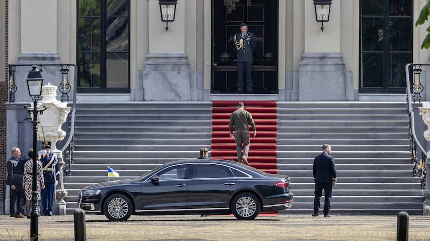 President Volodymyr Zelensky loopt de trap op naar de ingang van Paleis Huis ten Bosch. | Beeld: ANP
