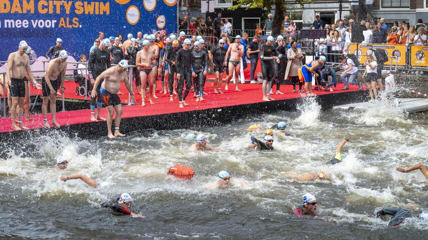 Ruim tweeduizend mensen hebben zondag in Amsterdam door de grachten gezwommen om geld op te halen voor wetenschappelijk onderzoek naar ALS. Door die aandoening raken zenuwen die spieren aansturen steeds verder beschadigd.