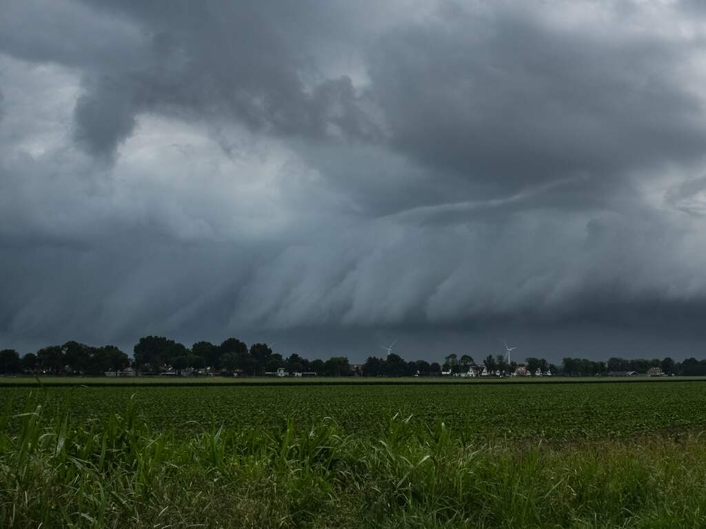 De stevige onweersbuien, waarvoor het KNMI code geel had uitgegeven in het hele land, gingen gepaard met hagel en harde windstoten. De windstoten konden een snelheid van 60 tot 75 kilometer per uur bereiken.