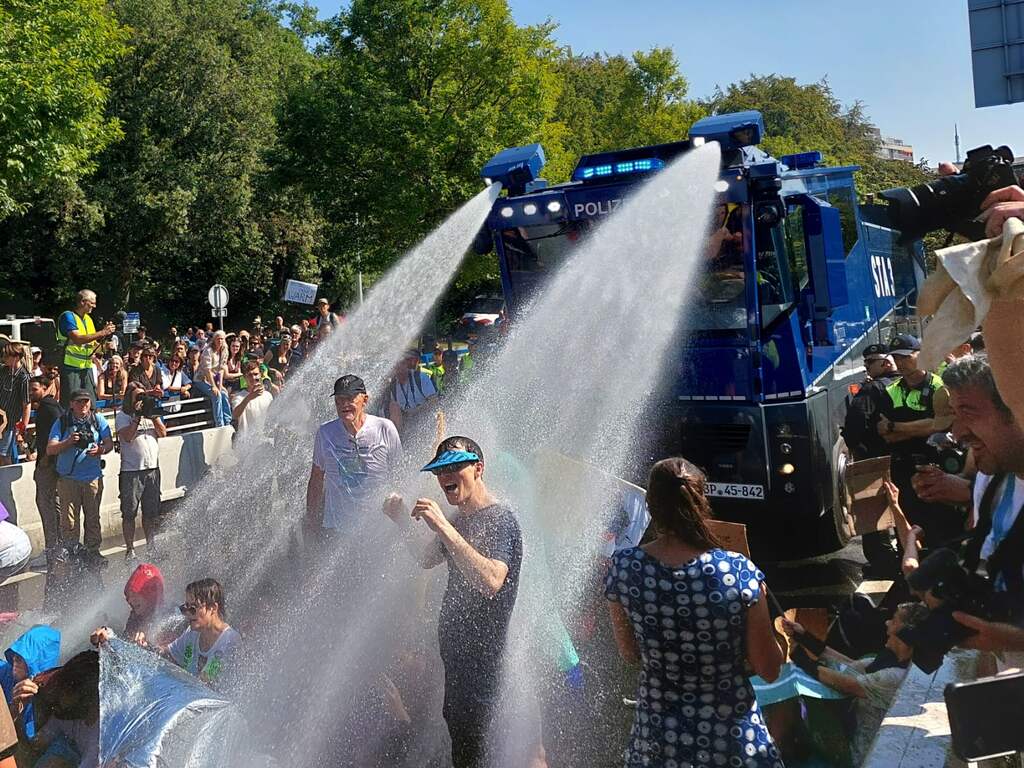 De inzet van een waterkanon dient in de ogen van de advocaat geen enkel doel, omdat daarmee de demonstranten niet worden verjaagd. Bovendien werden de waterkanonnen op 18, 19 en 20 september pas ingezet toen demonstranten al waren aangehouden. "Zij werden ingesloten tussen de politielinie en het waterkanon, wat doet vermoeden dat het hier om lijfstraffen gaat."