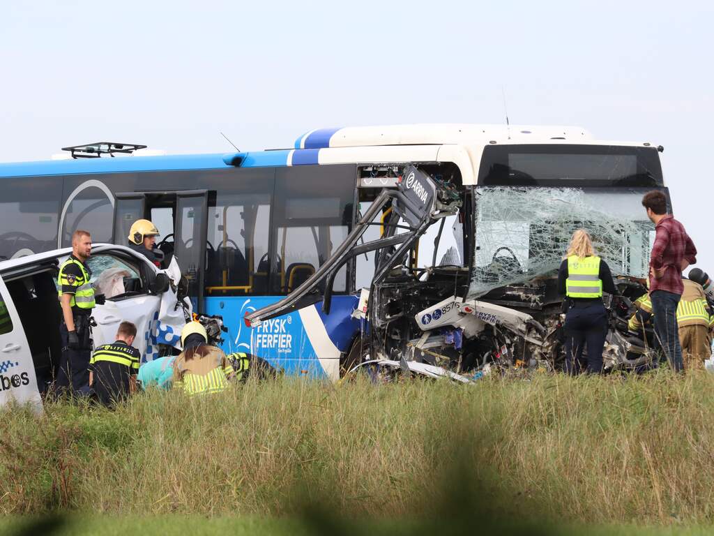 De taxibus is in de berm terechtgekomen, is op foto's te zien. Volgens Omrop Fryslân zijn schermen geplaatst bij het ongeluk. Er waren meerdere ambulances en een traumahelikopter aanwezig.