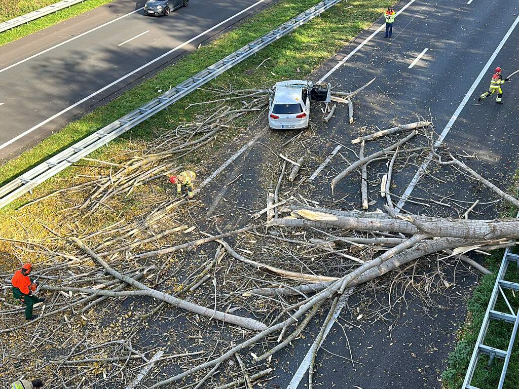 Op de snelweg A1 bij Barneveld is een boom op de weg gewaaid. Hierdoor is een rijstrook dicht en loopt het verkeer twintig minuten vertraging op. Ook op andere wegen, zoals op de A12 bij Woerden en op dezelfde snelweg ter hoogte van Driebergen en Zeist, leiden afgebroken takken tot hinder.