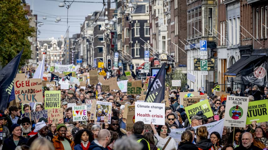 In beeld Tienduizenden demonstranten lopen klimaatmars in Amsterdam