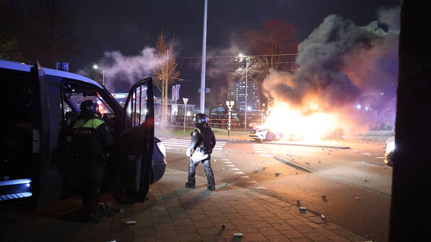 Meerdere politieauto's vlogen in brand. Hoeveel gewonden er zijn, is nog niet duidelijk. | Beeld: Robbert van der LindeMeerdere agenten en ME'ers raakten gewond, onder andere doordat er stenen naar ze werden gegooid. Hoeveel agenten gewond raakten, en hoe ernstig de verwondingen zijn, kan de politie op dit moment nog niet zeggen.