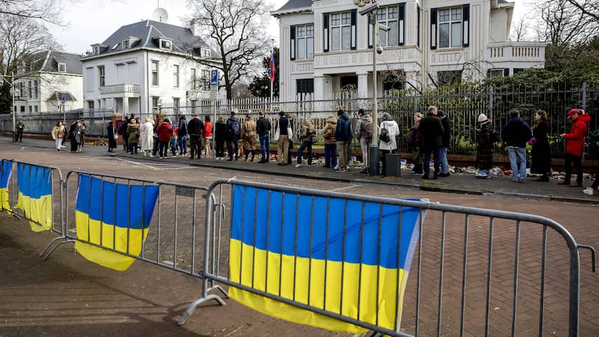 In beeld Russen in lange rij voor stembus in Den Haag na oproep tot protest