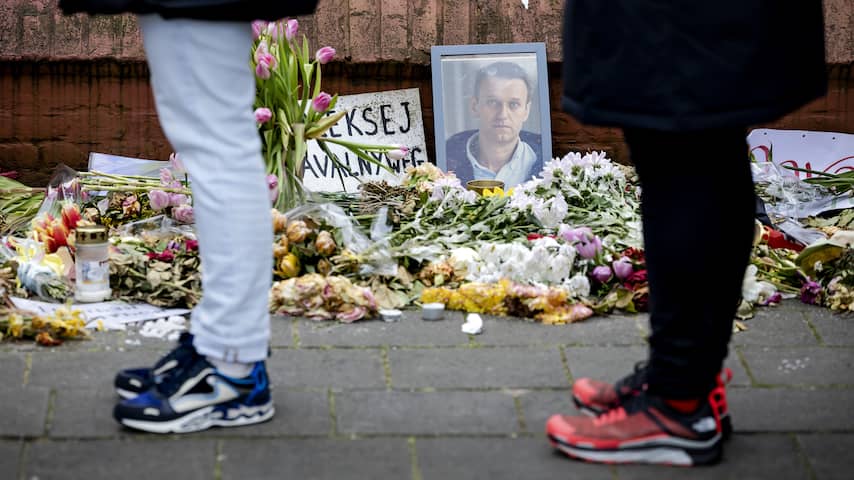 Sommige Russen brengen bij het stemmen een eerbetoon aan Navalny, die vorige maand in de gevangenis onder verdachte omstandigheden overleed. Hij gold als een van de belangrijkste tegenstanders van Poetin. | Beeld: ANP