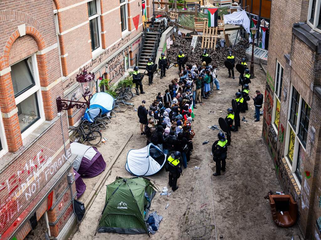 De pro-Palestina-acties in Amsterdam gaan onverminderd door, "totdat de Universiteit van Amsterdam, de Vrije Universiteit en het Amsterdam University College alle banden met Israël verbreken." Dat zegt Amsterdam Encampment, de organisatie achter de bezetting van het Binnengasthuisterrein.
