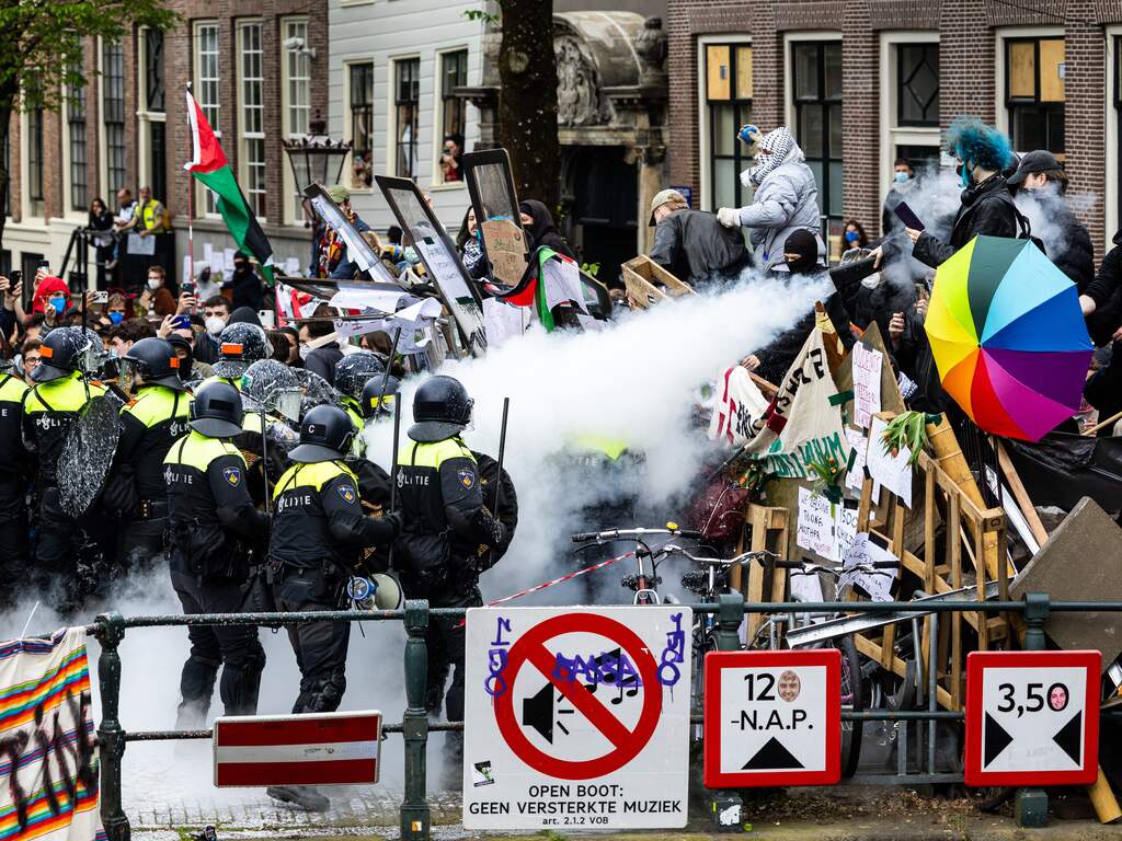 Dijkgraaf zegt blij te zijn dat de politie ingreep in Amsterdam. "Dit kan gewoon niet", zei hij bij Op1. Ook is hij blij dat de Universiteit van Amsterdam aangifte heeft gedaan tegen de demonstranten. Volgens de minister bevonden zich "professionele relschoppers" onder de actievoerders. De politie kwam eerder vandaag tot diezelfde conclusie.