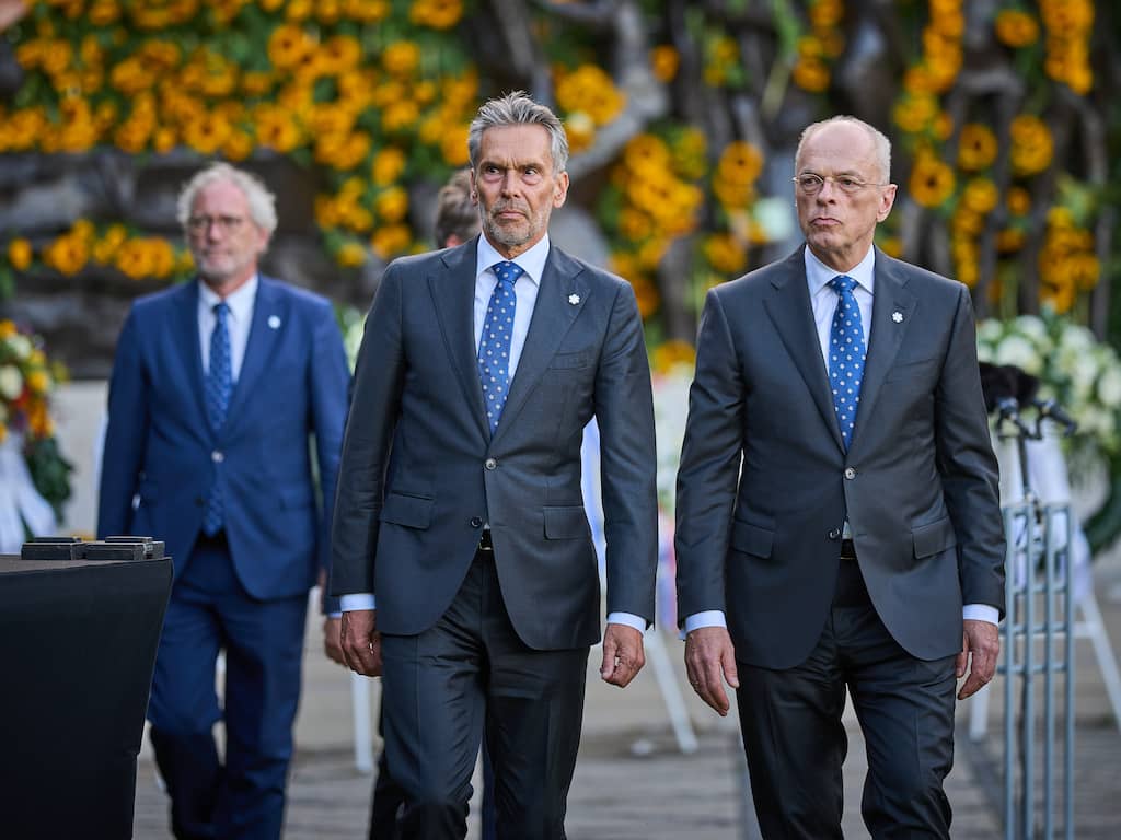 Premier Dick Schoof en voorzitter van de Eerste Kamer Jan Anthonie de Bruijn zijn ook aanwezig. De ceremonie eindigt met een defilé langs het Indisch Monument. | Beeld: ANP