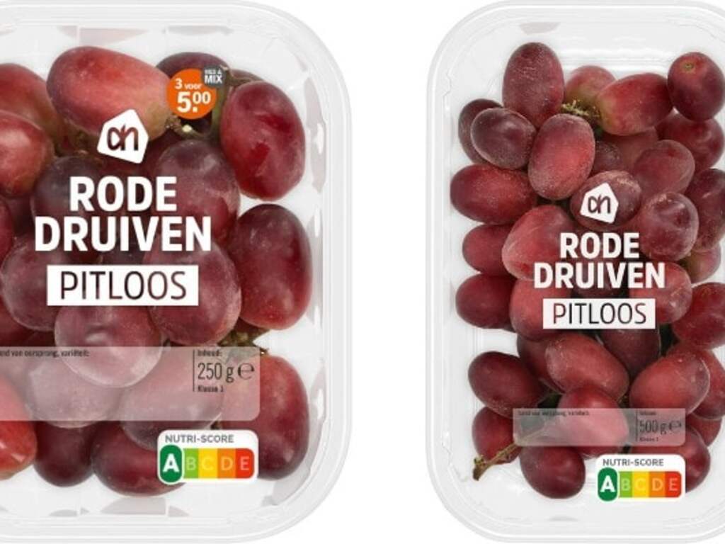 Albert Heijn roept alle pitloze rode druiven terug omdat die een giftige stof bevatten. Het gaat om verpakkingen van 250 gram en 500 gram met productcode 44-G op de voorkant.
