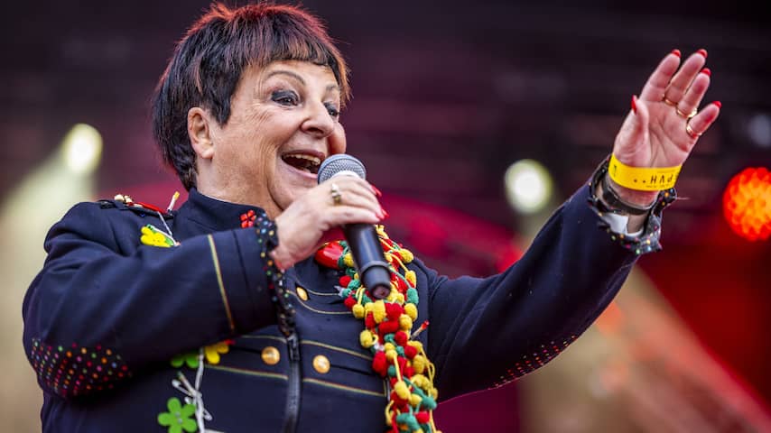 Beppie Kraft geeft een optreden aan carnavalspubliek in Roermond.