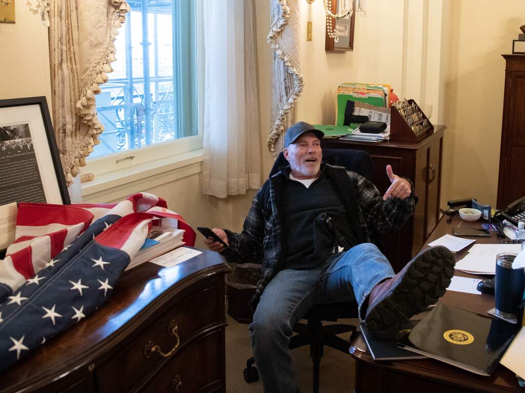 De man die in de kamer van Pelosi zat, werd vrijdag aangehouden in zijn woonplaats in de staat Arkansas. Een foto waarop hij met zijn benen op het bureau van Pelosi zat, werd woensdag veel gedeeld.