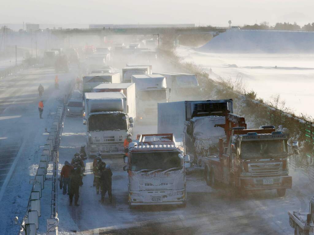 In delen van Japan is in de afgelopen weken ongewoon veel sneeuw gevallen. De Tohoku Expressway is met een lengte van 680 kilometer de langste snelweg van Japan.