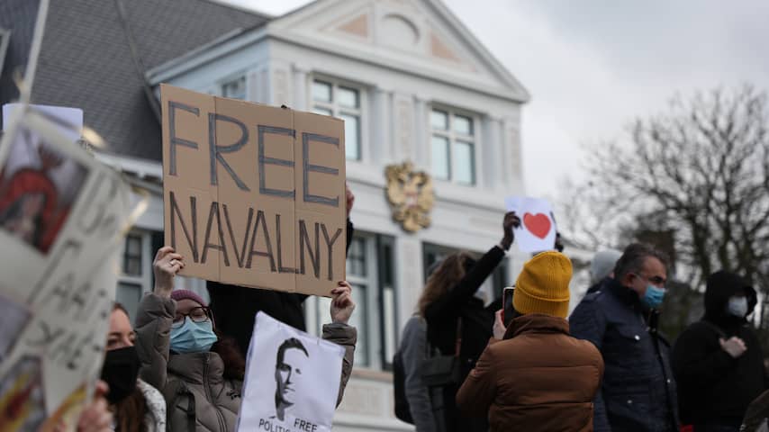 Demonstranten pleiten voor de vrijlating van Navalny bij een protest voor de Russische ambassade in Den Haag. | Beeld: Regio15