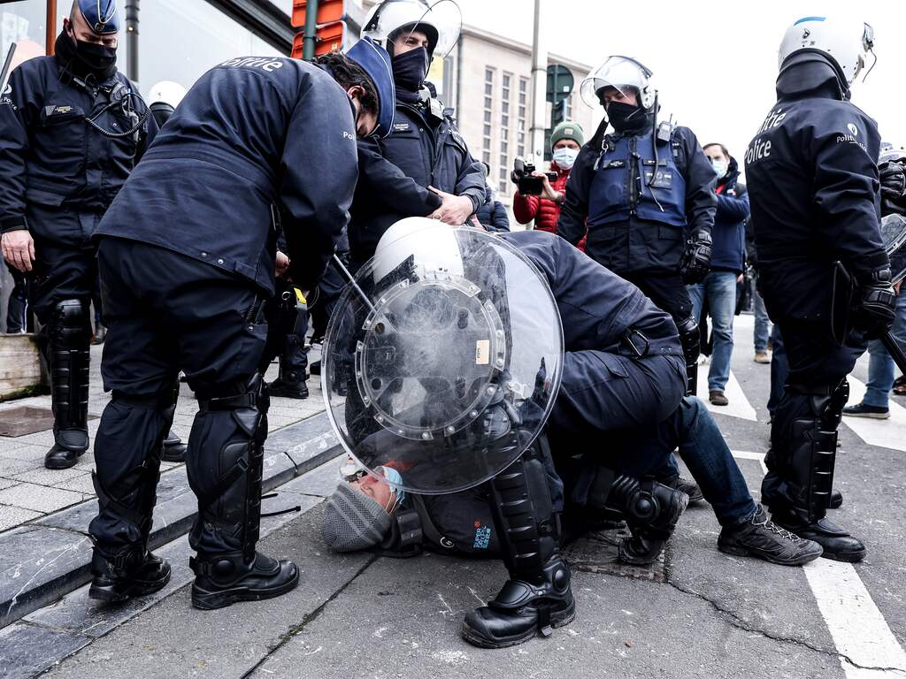 Honderden arrestaties bij coronademonstratie in Brussel