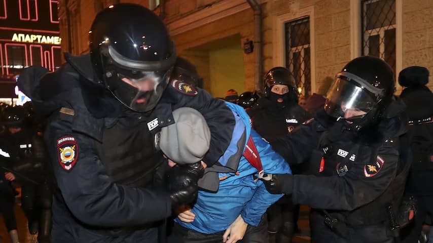 Agenten houden op 2 februari een betoger aan tijdens een demonstratie tegen de celstraf van Alexei Navalny in Moskou. | Beeld: ANPNavalny gaat krachtmeting met Poetin vol overtuiging aan