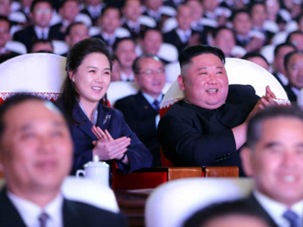 Op foto's die de Noord-Koreaanse staatskrant woensdag publiceerde, zijn Ri en Kim lachend te zien bij een concert in het Mansudae-theater in hoofdstad Pyongyang. In tegenstelling tot op foto's van eerdere evenementen, droeg op deze beelden niemand een mondkapje en hield niemand afstand.