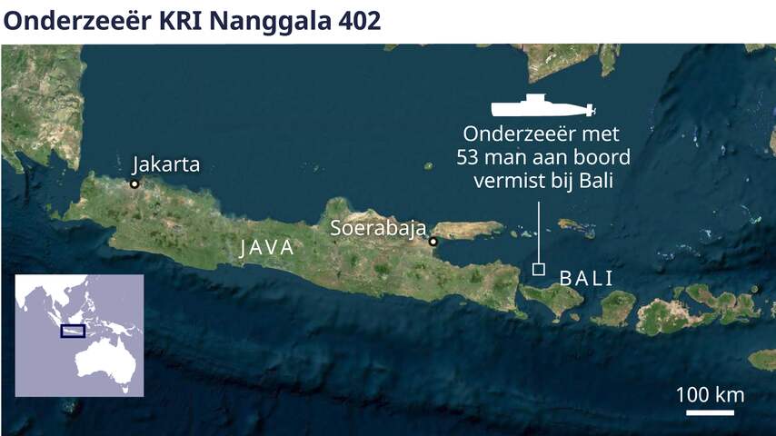 Beeld: NU.nlDe onderzeeër raakte vermist tijdens een torpedeeroefening in de buurt van het Indonesische eiland Bali.