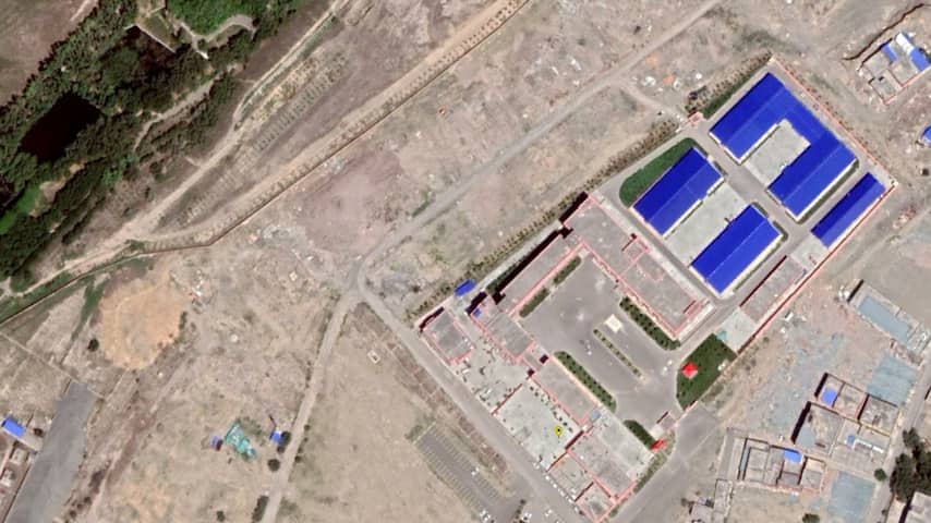 Satellietfoto van het heropvoedingskamp waar Qelbinur Sedik als eerste werkte, niet ver buiten de hoofdstad Ürümqi.Naar het kamp