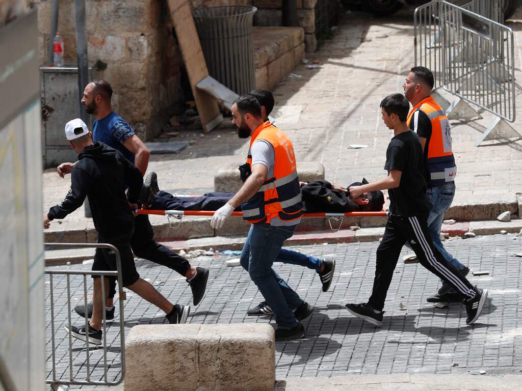 Bij confrontaties in Jeruzalem zijn maandagochtend honderden mensen gewond geraakt. De Israëlische politie botste bij de Al Aqsa-moskee opnieuw met Palestijnse betogers, die met stenen en andere projectielen gooiden. Agenten vuurden traangas, flitsgranaten en rubberen kogels af.