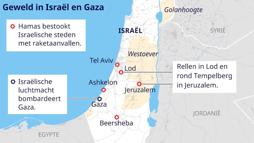 Sinds maandag hebben Israël en Hamas al honderden raketten op elkaar afgevuurd. Het Israëlische leger richt zich vooral op Gaza-Stad, waar veel Palestijnen wonen. Hamas heeft meerdere Israëlische steden als doelwit.
